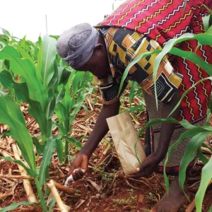 Header photo: A women applies fertilizer in Kenya. Das/CIMMYT.