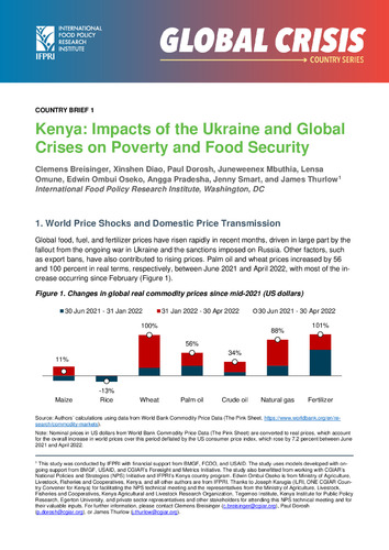 - Breisinger, Clemens; Diao, Xinshen; Dorosh, Paul; Mbuthia, Juneweenex; Omune, Lensa; Oseko, Edwin Ombui; Pradesha, Angga; Smart, Jenny; and Thurlow, James. 2022. Kenya: Impacts of the Ukraine and global crises on poverty and food security. Global Crisis Country Brief 1. Washington, DC: International Food Policy Research Institute (IFPRI).