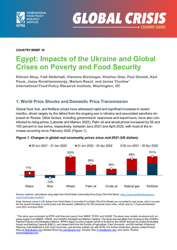 - Abay, Kibrom; Abdelradi, Fadi; Breisinger, Clemens; Diao, Xinshen; Dorosh, Paul; Pauw, Karl; Randriamamonjy, Josee; Raouf, Mariam; and Thurlow, James. 2022. Egypt: Impacts of the Ukraine and global crises on poverty and food security. Global Crisis Country Brief 18. Washington, DC: International Food Policy Research Institute (IFPRI).