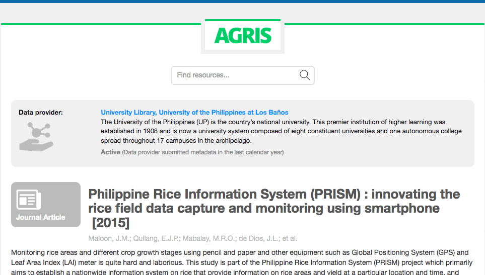 The Philippine Rice Information System (PRiSM), developed by CGIAR researchers at the International Rice Research Institute (IRRI) in collaboration with the Philippine Department of Agriculture, addresses this need by using satellite imagery and other new technologies to generate information on planted rice area, seasonality, yield, and risks to crops.