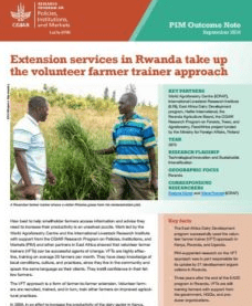 An impact evaluation in a dairy project in Uganda, using a randomized control trial design, demonstrated that two years after the original training, farmers with improved or cross-bred dairy cows in villages with volunteer trainers had increased adoption of improved feeding practices, resulting in higher milk production, compared to farmers in villages without trainers. Two other interventions, signposts at the homes of volunteer trainers and linkages between farmers and nearby extension staff, had further impact on increased productivity. After learning about the project’s preliminary findings, the Government of Uganda included the farmer-to-farmer approach as one of six approaches recommended to extension providers in its 2016 National Agricultural Extension Strategy.