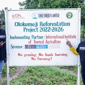 IITA Forest Center received donor representatives of the AFR1OO reforestation project in Olokemeji on 14 October. The representatives, Eunice Adofo Boanya and Samuel Appiah Ofori, arrived to assess the project’s progress and provide support where necessary. And despite heavy rainfall on this day, the forest staff’s dedication and the donors’ determination made the day.