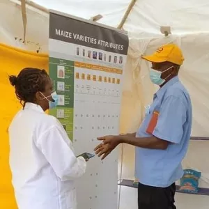 The goal of the out-of-stock study is to improve an understanding of how farmers make their maize seed choices, says Pieter Rutsaert, Markets and Value Chain Specialist at CIMMYT. “We do this by inviting farmers to a mock agrodealer store that we set up in their villages and give them a small budget to purchase a bag of seed. However,
