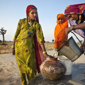Header image: Women fill water vessels from a concrete Taankas, underground rainwater harvesting tanks, built in the Thar Desert near Phalodi. Photo by Dieter Telemans/Panos.