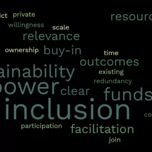 Header image: A word cloud visualizing the most challenging parts of organizing MSPs according to workshop participants. Source: Ryan Nehring/IFPRI.
