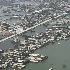 Top photo: An aerial view photo taken during 2022 Pakistan floods / Ali Hyder Junejo