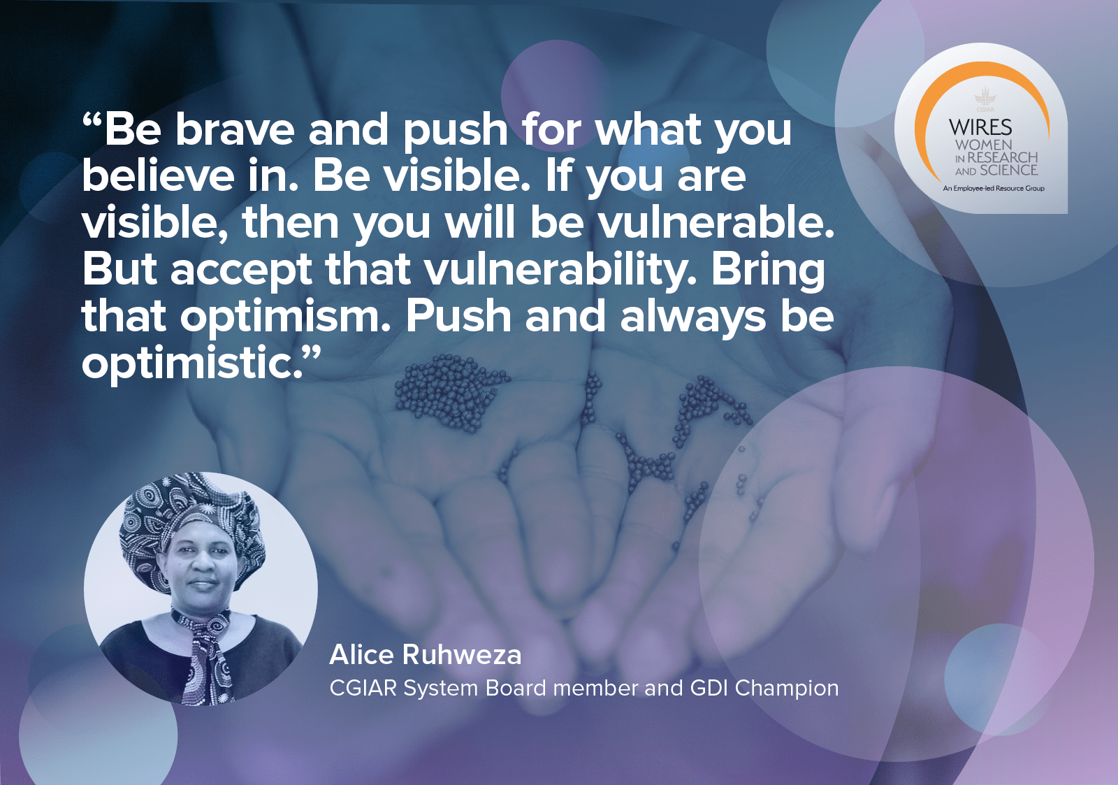 Alice said that CGIAR also needed women to mentor men, helping to create male champions of gender equality that could help promote more equality.