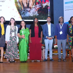 Speaking in a plenary panel discussion on Wednesday were Dr Lauren Phillips, Deputy Director of Inclusive Rural Transformation and Gender Equality, United Nations Food and Agriculture Organization (FAO); Dr G.V. Ramanjaneyulu, Executive Director, Centre for Sustainable Agriculture; Dr. Meredith Soule, Division Chief, Inclusive Development, USAID; Dr. Michèle Mbo’o-Tchouawou, Deputy Director of Programs, African Women in Agricultural Research for Development (AWARD); Ms Neena Joshi, Interim Senior Vice President for Asia, Heifer International; and Mr Nishant Gupta, Social and Environmental Impact Advisor, Walmart India. The session, titled ‘From Research to Impact: Towards Agri-Food Systems Transformation’, was sponsored by AWARD and Heifer International.
