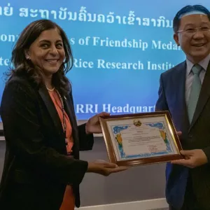 “We are deeply honored to receive the Cross of Friendship Medal, a testament to the strong and enduring partnership between IRRI and Lao PDR in advancing rice science for food security and sustainable agriculture. This recognition reaffirms our commitment to working alongside Lao farmers, researchers, and policymakers to strengthen food security, and support the livelihoods of farming communities across the country,” said Dr. Pinto.