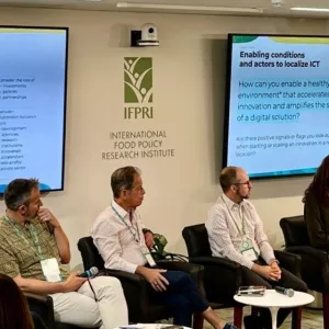 ICTforAg 2024 was an annual convening over May 28-30 in Washington D.C., Nairobi, Texcoco, Los Banos, New Delhi, and online; organized by CGIAR’s Initiative on Digital Innovation, DAI, and DevGlobal with the support of United States Agency for International Development; Feed the Future, the U.S. Government’s Global Hunger and Food Security Initiative; The Rural Development Administration of the Government of the Republic of Korea; and the Ministry of Agriculture and Rural Development of Mexico. This year, CGIAR’s Accelerate for Impact Platform (A4IP) had the opportunity to join on-site at IFPRI in Washington D.C. as an Event Partner for the first day of the ICTforAg event, with A4IP’s Megan Steele serving as the Emcee.
