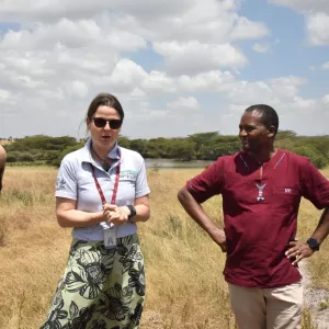 Banner photo: Claudia Arndt, Co-Leader of Mazingira Centre at ILRI, and Bernard Kimoro, Head of Climate Change and Livestock at the Kenya State Department for Livestock, explain the biggest livestock issues in Kenya and partnership with each other. Photo by K.Tam/ILRI.