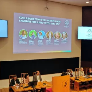 A highlight of the conference was the session “Collaboration for Rangelands: Fashion for Land with the RSC,” hosted by the Rangeland Stewardship Council (RSC) and featuring the Sustainable Fibre Alliance (SFA), The United Nations Convention to Combat Desertification (UNCCD), the Global Alliance for the International Year of Rangelands and Pastoralists (IYRP) and the Sustainable Investments for Large-Scale Rangeland Restoration (STELARR) project, which was represented by Fiona Flintan, a Senior Scientist at International Livestock Research Institute (ILRI) and STELARR project lead. This session brought together voices from different stakeholders to explore how rangeland restoration could be realized through the cooperation of fashion policy and science. The dialogue focused on identifying what works in practice and how to replicate those solutions.