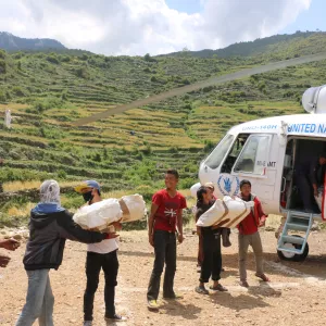 Top image: A World Food Programme helicopter delivers humanitarian aid to Nepal in 2015. WFP/Angeli Mendoza