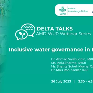 For the second installment of the Delta Talks, the CGIAR Initiative on Asian Mega-Deltas (AMD) and Wageningen University & Research (WUR) presented a webinar on inclusive water governance in Bangladesh deltaic food-systems. Four experts from different institutes working under AMD shared on the challenges related to water governance and the Initiative’s efforts to address them.