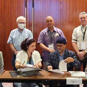 We would like to thank all funders who support this research through their contributions to the CGIAR Trust Fund. Main photo: Signing of LOU, with representatives from CGIAR Systems Office / Genetic Innovation, IRRI, AfricaRice, CIAT, and Bill and Melinda Gates Foundation.