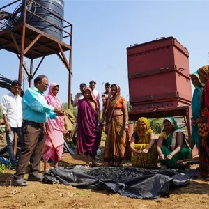 Top image: A biochar business model pilot was established in the Shahada cluster, a NATURE+ worksite in India. Credit: BAIF