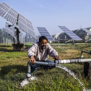 Solar-powered irrigation could be touted as a modern-day exemplar of hi-tech India, nestled within the larger narrative of the irrigation that propelled the Green Revolution. With groundwater now supplying 60% of irrigation across the country, the emergence of solar pumps is allowing farmers to draw water without using energy derived from coal-powered plants or diesel-powered pumps. However, there is a dark side to ‘sunshine farming’. Once installed, solar power is free – and this can exacerbate the ongoing depletion of scarce water resources, particularly in the drier north-western and peninsular regions of India.
