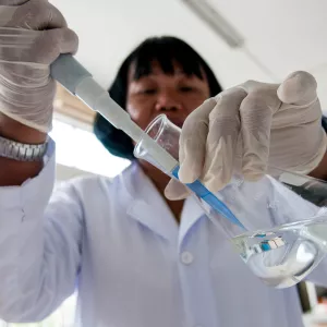 Photo: Prof. Nguyen Thi Lang, a Cuu Long Delta Rice Research Institute breeder, researching drought, salient and submergence tolerant rice varieties in Vietnam. Photo by G. Smith/Alliance of Bioversity and CIAT.