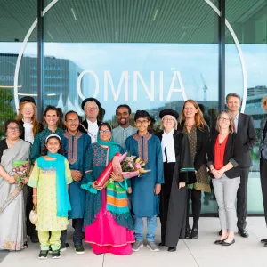 Header image: Dr. Mahsina Akter poses with members of her family, thesis committee, and colleagues on September 24, 2025, the day of her dissertation defense at the Wageningen University and Research campus.