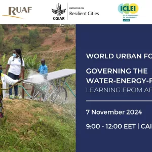 You are invited to an in-person workshop on 7 November 2024 hosted by FAO, RUAF, CGIAR, and ICLEI at the 12th Session of the World Urban Forum (WUF) in Cairo, Egypt. The interactive training will focus on governing the Water-Energy-Food Nexus, drawing on experiences from African cities.