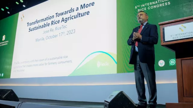 Manila, Philippines (19 October 2023) — The pursuit of sustainable agriculture is significantly reshaping global agricultural landscapes, according to Jose Re, vice president for New Product Development at RiceTec. At the International Rice Conference 2023, Dr. Re highlighted the pioneering technologies and stakeholders’ collaborations that the company used to drive sustainable food production and positively impact farmers’ lives and livelihoods.