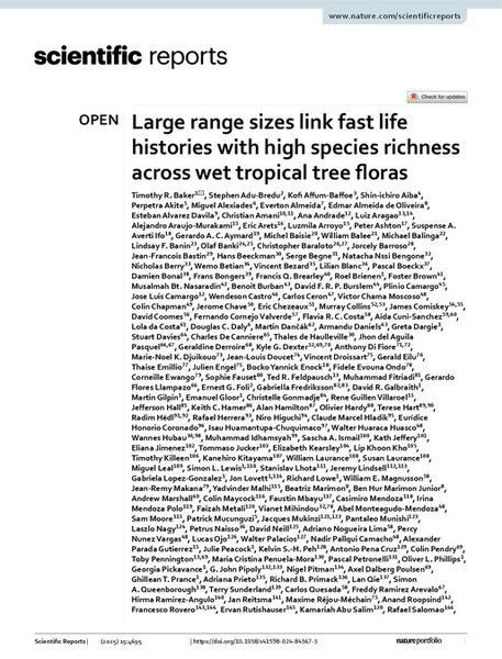 Understanding how the traits of lineages are related to diversification is key for elucidating the origin of variation in species richness. Here, we test whether traits are related to species richness among lineages of trees from all major biogeographical settings of the lowland wet tropics. We explore whether variation in mortality rate, breeding system and maximum diameter are related to species richness, either directly or via associations with range size, among 463 genera that contain wet tropical forest trees. For Amazonian genera, we also explore whether traits are related to species richness via variation among genera in mean species-level range size. Lineages with higher mortality rates—faster life-history strategies—have larger ranges in all biogeographic settings and have higher mean species-level range sizes in Amazonia. These lineages also have smaller maximum diameters and, in the Americas, contain dioecious species. In turn, lineages with greater overall range size have higher species richness. Our results show that fast life-history strategies influence species richness in all biogeographic settings because lineages with these ecological strategies have greater range sizes. These links suggest that dispersal has been a key process in the evolution of the tropical forest flora.